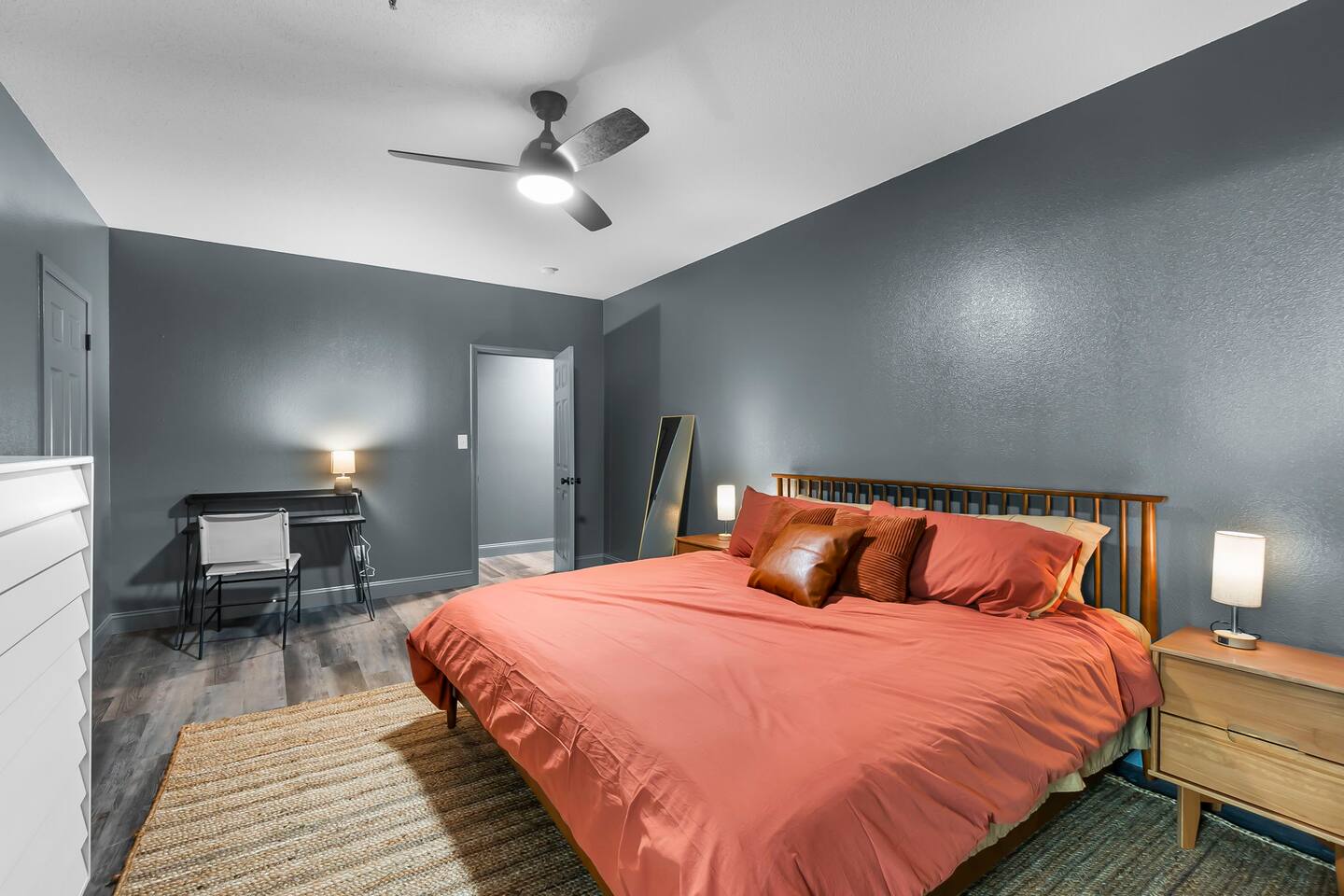 Experience style and convenience in this new, cozy, fully outfitted central apartment. Enjoy your privacy while being right in the heart of downtown Cape Girardeau! You’ll be seconds away from great restaurants, bars, shops, and more! A great stay for both short-term and mid-term stays! - King-size bed - Dedicated workspace + highspeed wifi - Fully equipped kitchen - Laundry machine in unit - Free parking - Walkable area, near trails and park